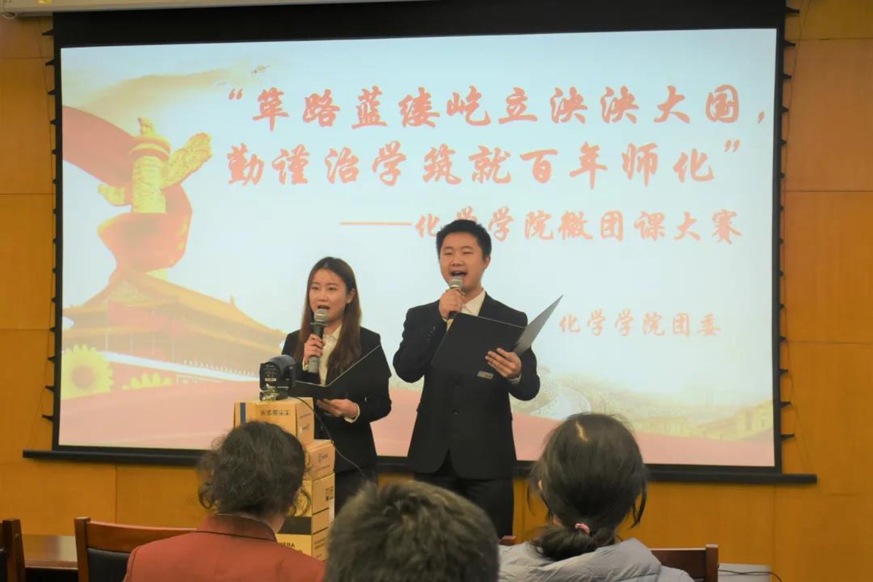 “党团共建,不忘初心;校院携手,砥砺前行!”随着郭笑汝、杨宇两位主持人热情洋溢的解说,化学学院庆祝建党一百周年微团课大赛正式拉开了序幕。
