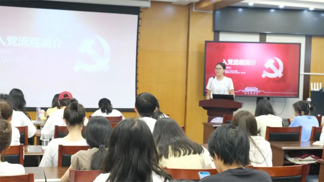 而后,22级化学学院博士生党支部书记李祥园为学员们介绍了入党流程,细致入微地讲解了各步骤如何进行、党员是如何被一步步筛选出来的。只有入党动机纯洁,思想道德端正,愿意为共产主义和中国特色社会主义奋斗终身的人才能成为一名合格的党员。