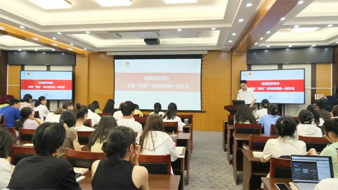 接着,化学学院团委副书记霍康宁给学员们带来了团校第一讲——“增强团员意识,做‘四有’标识鲜明的一流学生”。从“不怕牺牲,浴血斗争”到“把青春献给祖国”,从“团结起来,振兴中华”到“清澈的爱,只为中国”,霍康宁以时间为轴,讲述了北师大先辈曾走过的路,展现了北师大人在家国复兴之路上的峥嵘岁月。同时,他向学员们仔细介绍了北京师范大学校团委及化学学院院团委的基本情况,鼓励学员们积极参加各项活动,提升自我,绽放青春。