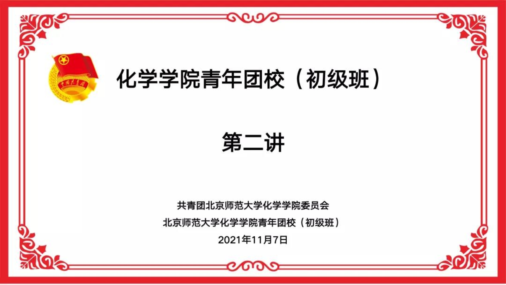 2021年11月7日,化学学院第七期青年团校(初级班)在线上举办了本学期第二次团课。本次团校由北京师范大学“请党放心 强国有我”七一专项青春宣讲团的四位宣讲代表主讲。组织部干事袁静秋主持了本次团校活动。