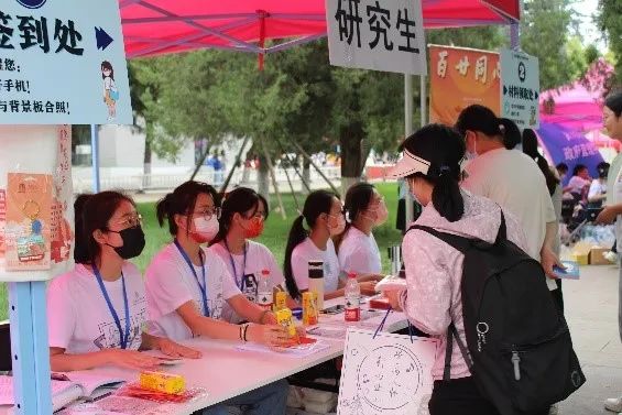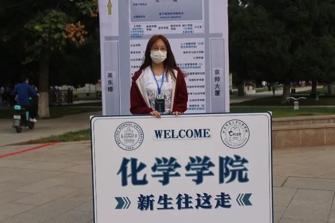 当新生们踏进校园时,就有工作人员对其进行引导,顺利来到化学学院的迎新摊位。