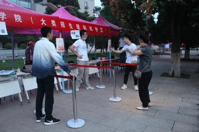报到现场,迎新志愿者们已经等候多时。根据新冠疫情的防控要求,所有工作人员都已佩戴好口罩,有条不紊的给新同学们进行签到、领取新生礼包、提供绿色通道相关工作的指导。