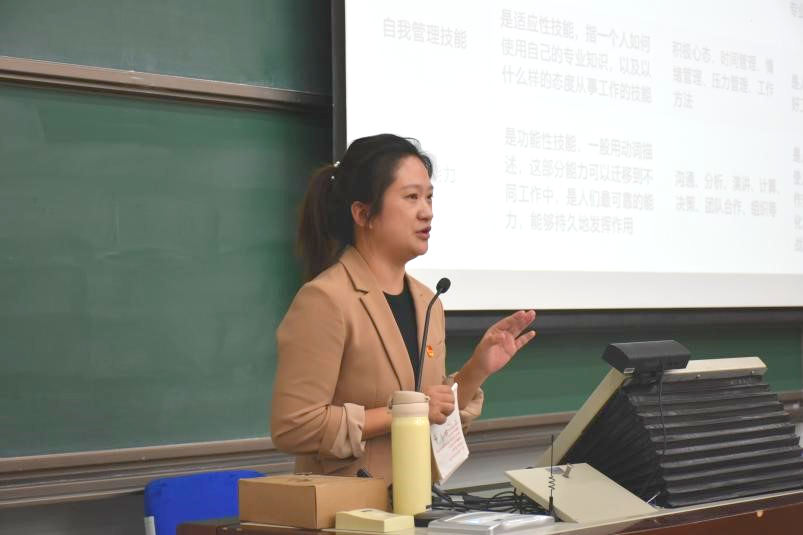 首先,化学学院团委书记徐娜老师为同学们讲解了学生活动的特点和参加学生组织的意义,强调了专业技能和自我管理技能相结合的重要性。她表示参加学生工作既能调节辛苦的科研学习,又能拓宽自己的人际交往面,还能培养自己的业余兴趣。徐娜老师希望同学们能够将知识和能力搭配起来,收获丰富而又精彩的大学生活。