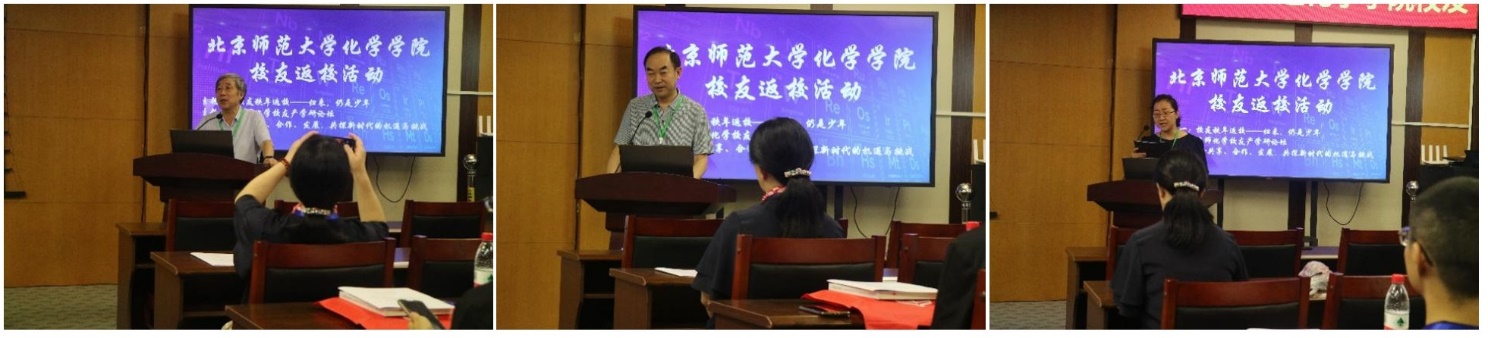 第一阶段为校友报到环节。学校校友会为秩年校友准备了精美的秩年纪念品,化学学院为所有返校校友发放了《春华秋实,化学格致——纪念北京师范大学化学学科创立110周年》书籍等。精心准备的校友标识和文化产品进一步增强了校友们的校友意识,为后续活动的开展做了很好的铺垫。